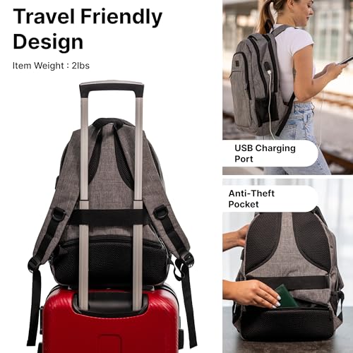 Details: Introducing the Carrywell Travel Laptop Backpack Featuring waterproof and durable fabrics, this travel backpack provides the best protection for your laptop. The traveling backpack is made from high-quality, water-resistant fabrics and is designed to withstand the demands of travel. It can handle everything from airplane and cruise travel to urban exploration, returning to college, and rough outdoor activities like hiking. All of the handles, straps, and clips are double-stitched for increased carry strength. Features This travel bag can be used as a carry-on backpack, due to its luggage strap and USB charging port design, which makes it a practical carry-on back pack. This laptop bag has a separate compartment which is large enough to accommodate laptops up to 16 inches, 15 inches, 14 inches, and 13 inches. Say goodbye to sore shoulders and sweaty backs with our stylish bookbag for women and men. Organizing your items is easy with the front compartment, which comes with many pockets, pen pockets, and a key fob hook. Two side pockets can hold water bottles and umbrellas, making your items more organized. Men's travel laptop backpacks have independent pockets for large storage and organization for small items. Airline approved backpack has a hidden anti-theft pocket on the back, which protects your valuables. Airplane backpack is suitable for international airplane travel or weekend bookbags. Great as a travel gift for men and women! Objective Our objective is to minimize America's reliance on China. Carrywell is a 100% American-owned company headquartered in Miami, Florida. We do not manufacture any products in China, and our travel laptop backpack for men and women is entirely created in Cambodia.