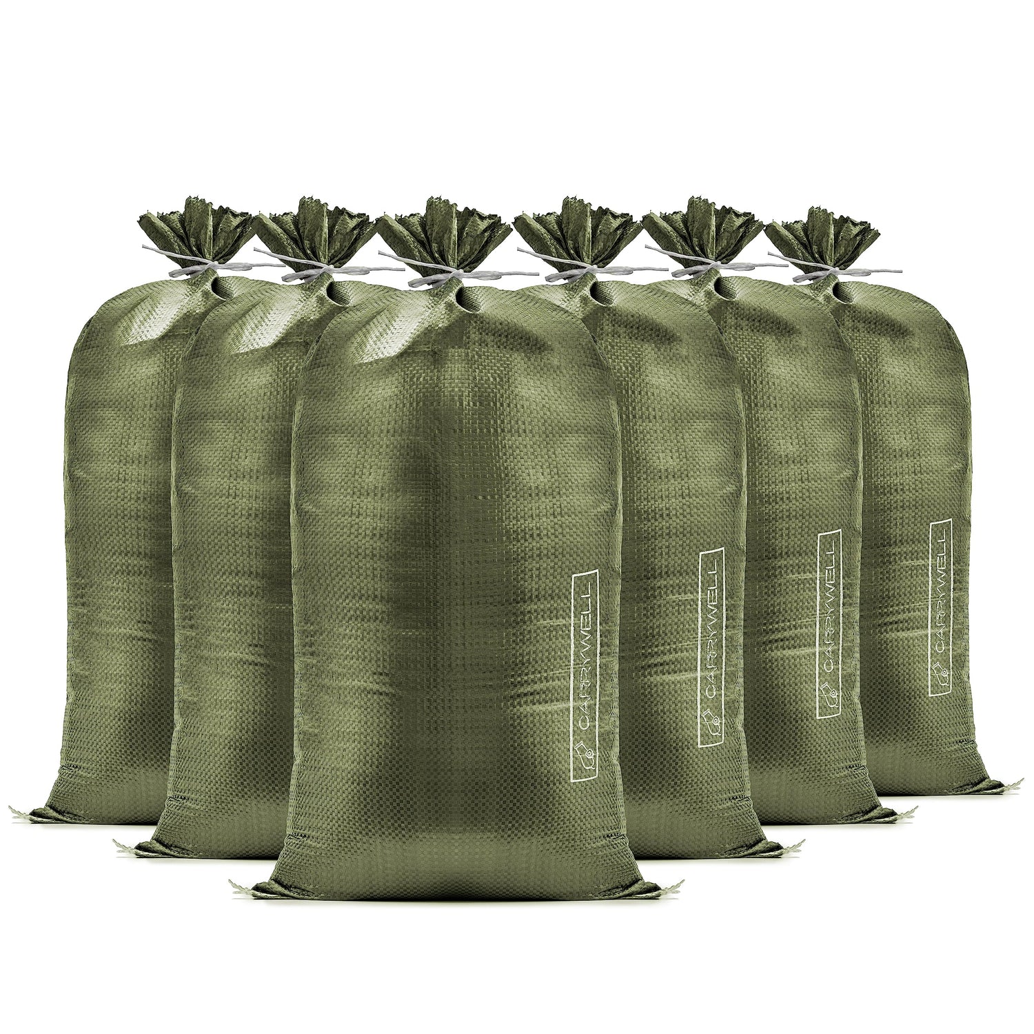 - Flood Protection and More : Carrywell sandbags were designed to keep your home and business safe. Easy to fill and effective as barriers for floods during hurricanes and heavy rain storms. Whether you are landscaping, managing a construction site, storing dry materials, or anchoring canopies and umbrellas, Carrywell sand bags offer a wide range of uses. Convenient built-in tie strings give you total control over when and how you want to use these utility bags.