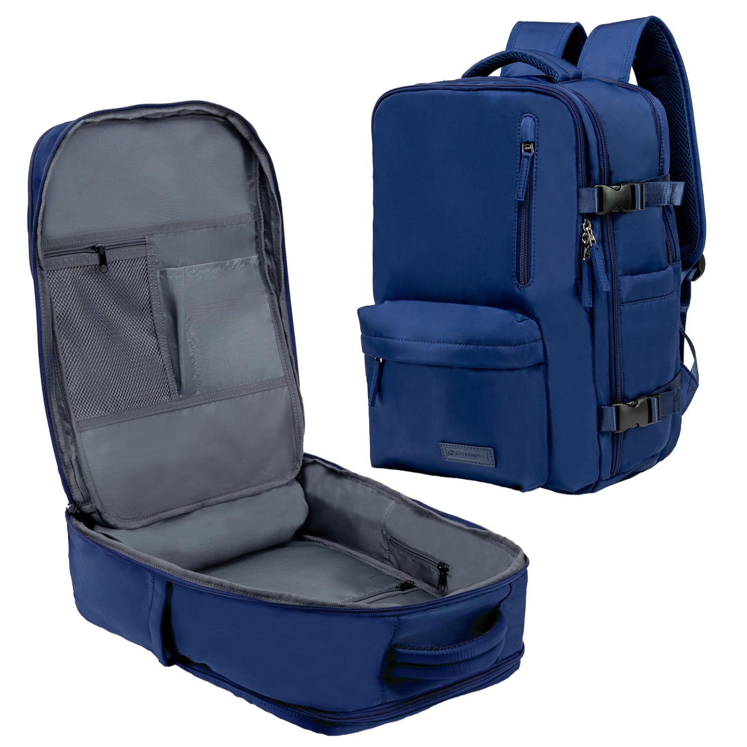 Details: Introducing the Carrywell Travel Backpack Crafted from high-quality, water-resistant materials, this suitcase backpack is perfect for both short getaways and extended trips. Featuring waterproof and durable fabrics, this travel back pack provides the best protection for your laptop. The travel bag is suitable for anything from airplane and cruise travel to urban exploring and tough outdoor hikes. All of the handles, straps, and clips are double-stitched for increased carry strength. Features This backpack features dedicated pockets for all your tech and personal items, including an innovative wet pocket and shoe compartment, ensuring the organization is optimized. The padded shoulder straps ensure comfort, relieving shoulder pressure and offering optimal weight distribution so you can feel stable on the go. Whether you need to carry your belongings for a business trip, college lecture, or a mountain hike, this laptop backpack is the perfect organizational tool. With two main sections, two laptop compartments (for a 13" tablet and a 17" laptop), a shoe compartment, and a water-resistant wet bag, you can keep your belongings organized, dry, and easily accessible. The anti theft backpack keeps your valuable items safe and secure, giving you peace of mind as you explore new places with our functional rucksack. Whether you’re out hiking with a friend, flying to another country, or on your way to the office, this large backpack for travel is the perfect companion. American Owned We are delighted to be a completely American-owned company with our headquarters in Miami, Florida. Carrywell travel suitcase bags are designed in the United States and responsibly sourced in Myanmar, conforming to the highest industry standards and providing you with reliable items.