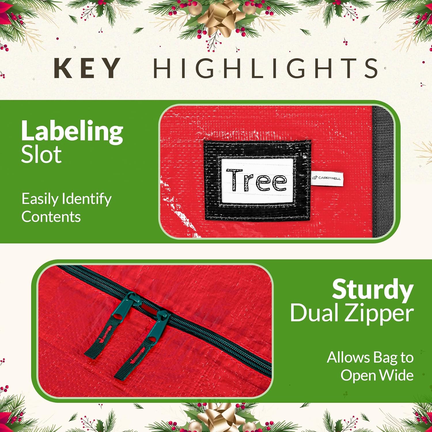- Easy Carry : 2 top handles and 2 side handles make carrying and maneuvering your christmas tree a breeze. Each handle is reinforced with box-stitching, a 4-way stitch that provides added carry strength and durability.