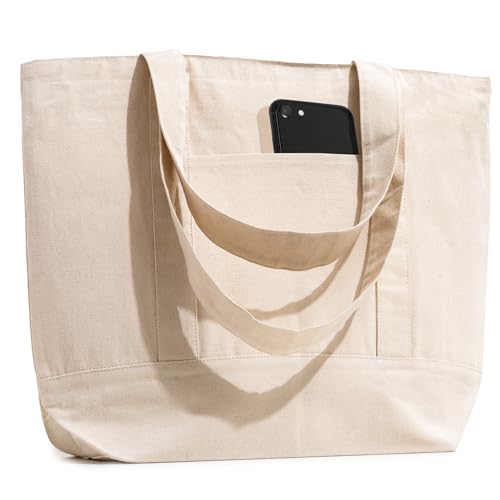 - Chic and Durable Design: The 14oz Organic Cotton Tote bags boasts a stylish canvas exterior that not only looks good but also withstands daily wear and tear. The timeless design complements any outfit, making it a fashion-forward choice or a functional carry solution for groceries and the farmers market.
